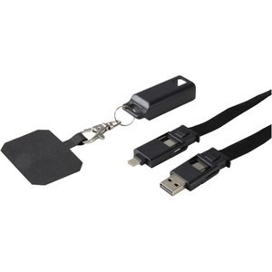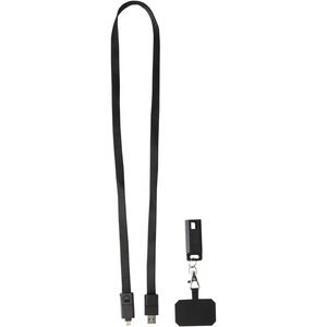 The Franz smartphone lanyard made from recycled plastic is a handy accessory featuring a built-in 65W 5-in-1 charging cable, offering Type-C and USB-A inputs and Type-C, Lightning and microUSB output. This cable is powerful enough to quickly charge most laptops, tablets and smartphones. Compatible with both CarPlay and Android Auto, making it perfect for travel, work, or everyday use.